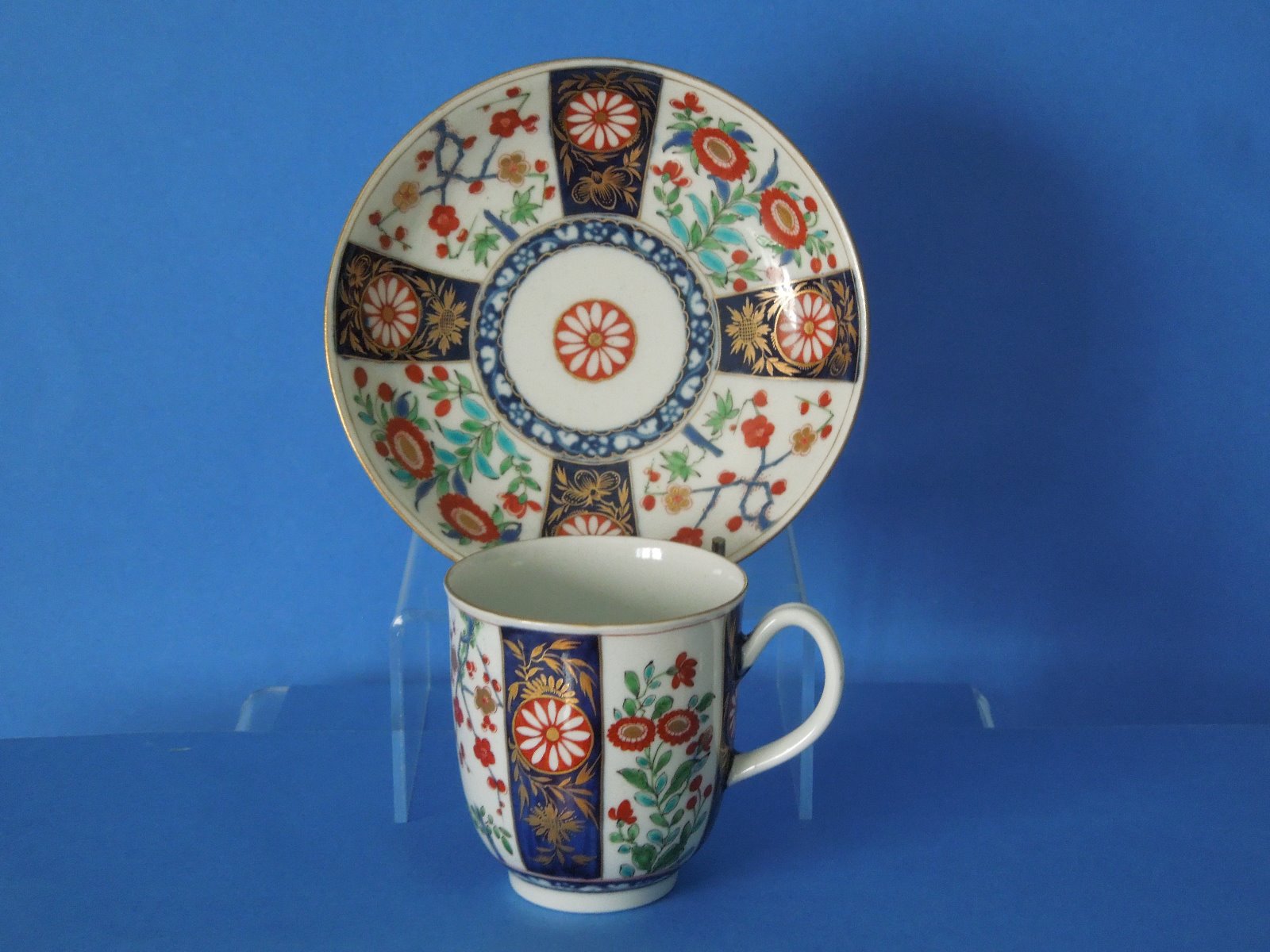First Period Worcester 'Rich Queens Pattern' Coffee Cup & Saucer c.1760-1770