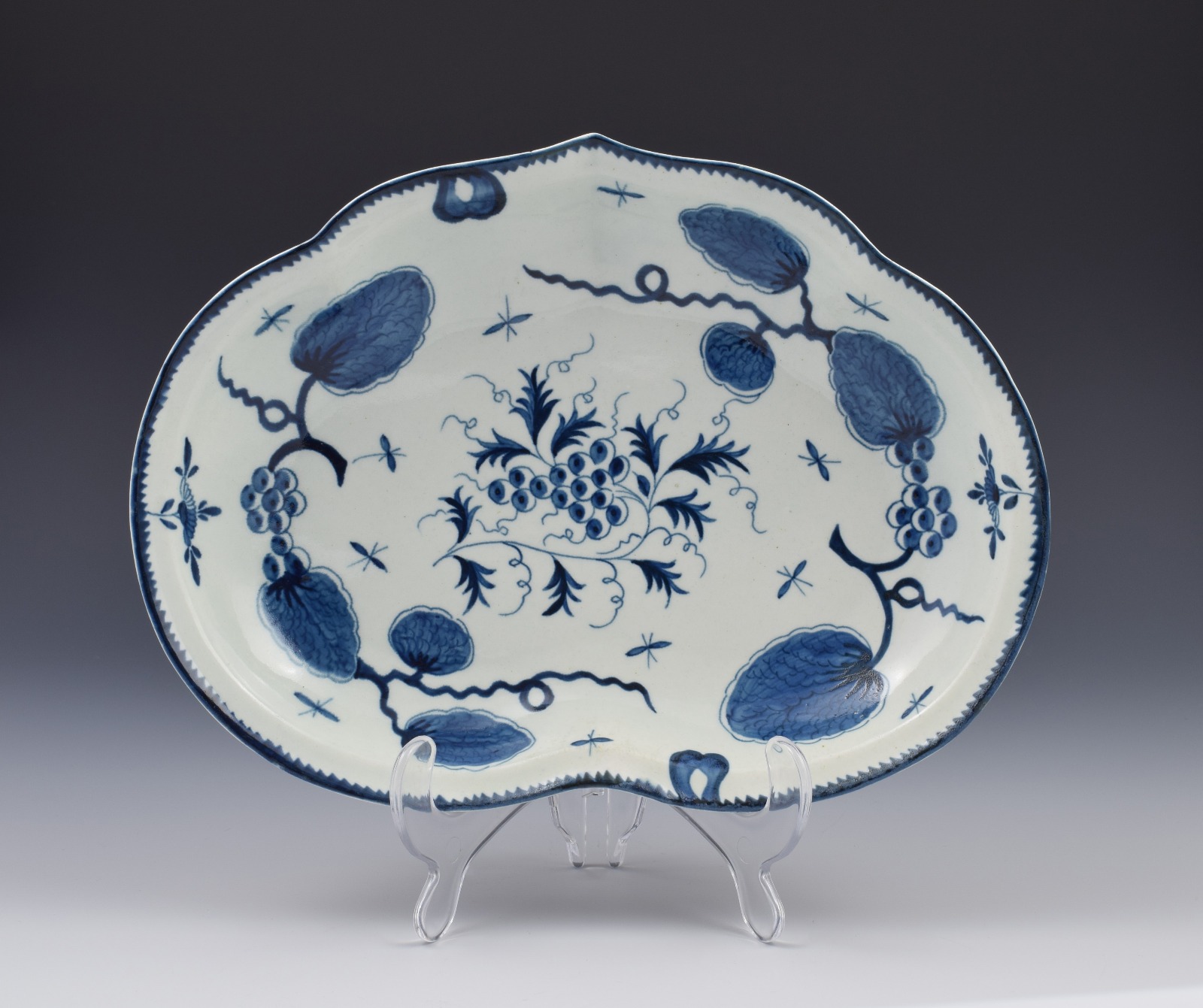 First Period Worcester Rubber Tree Plant Compotier Kidney Dish C.1775
