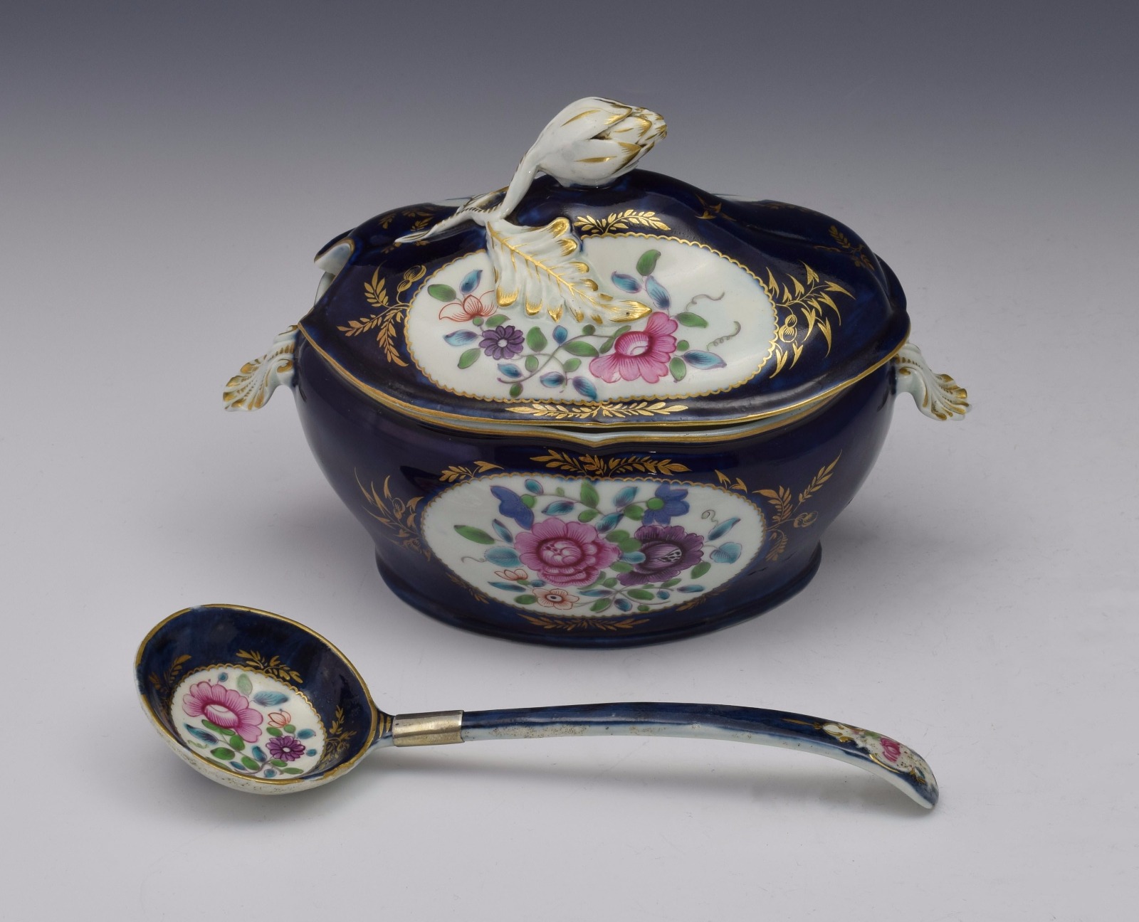 First Period Worcester Sauce Tureen & Spoon C.1770