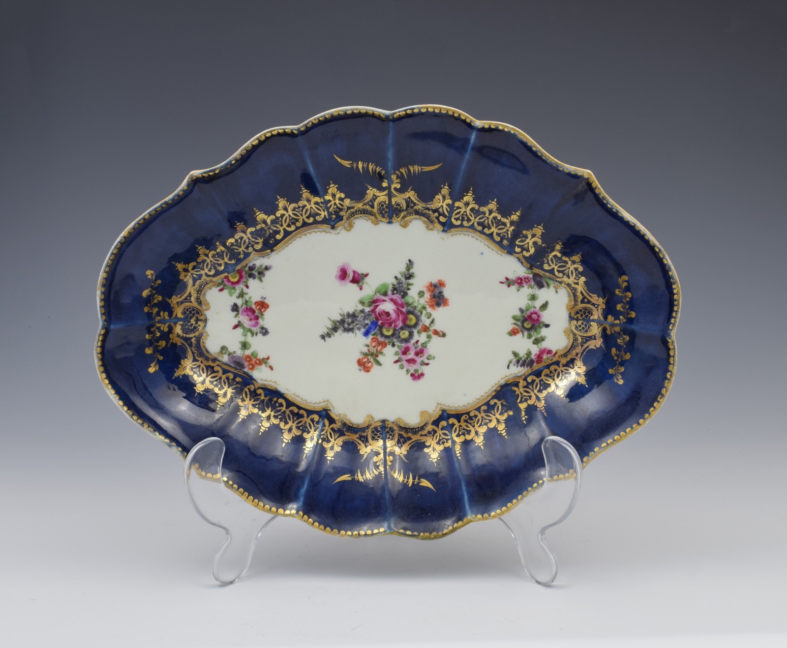 First Period Worcester Wet Blue Lozenge Dessert Dish C.1775