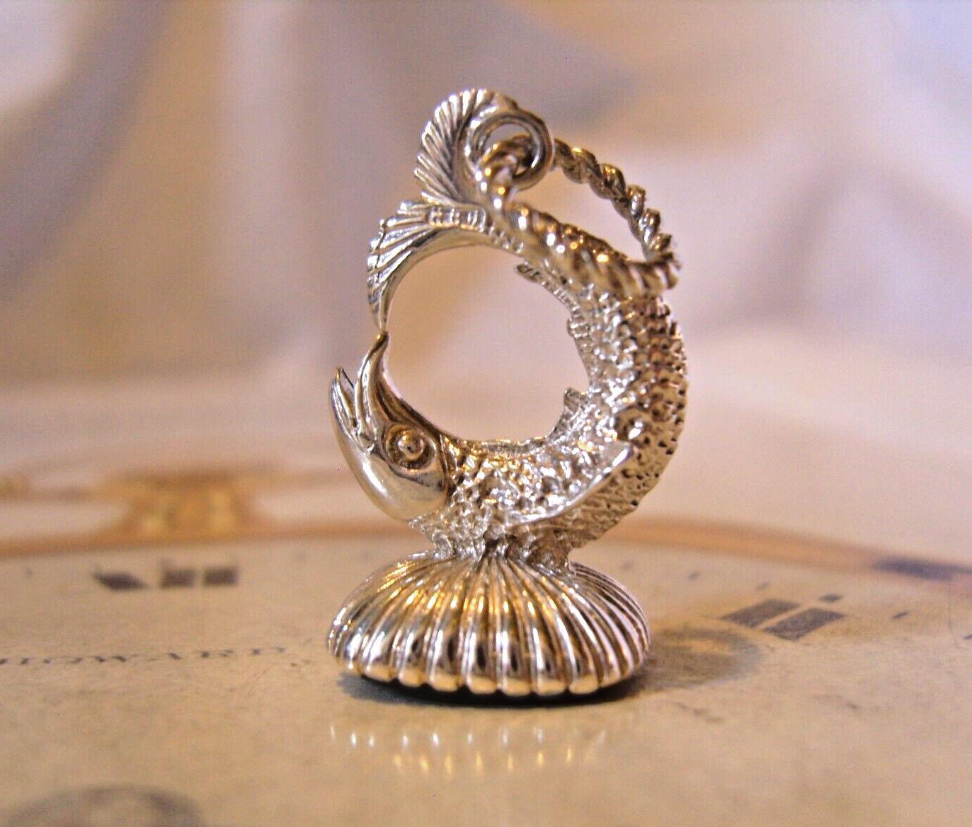 Fish Fob Sterling Silver 1974 Pocket Watch Chain Vintage Fob Set With Bloodstone