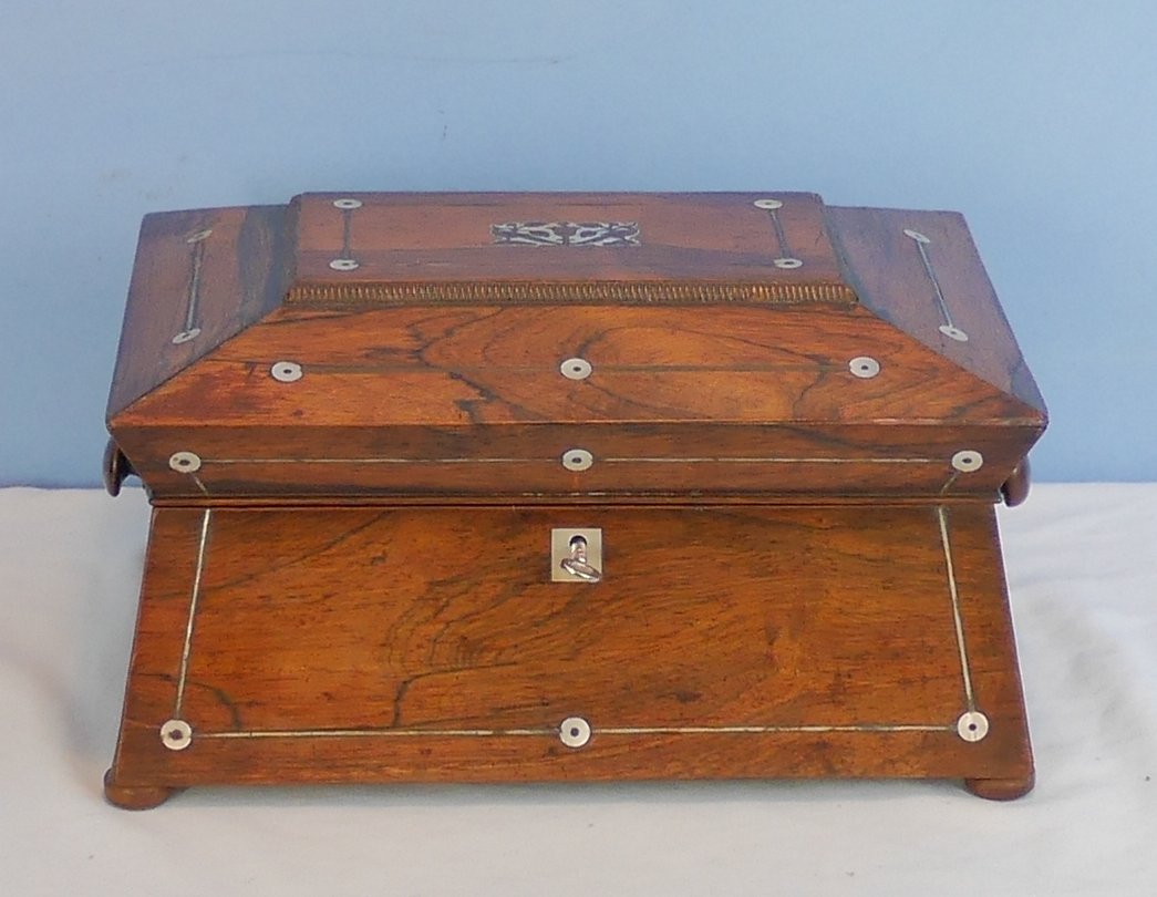 Fitted Rosewood Jewellery Box Inlaid with Mother of Pearl c.1850