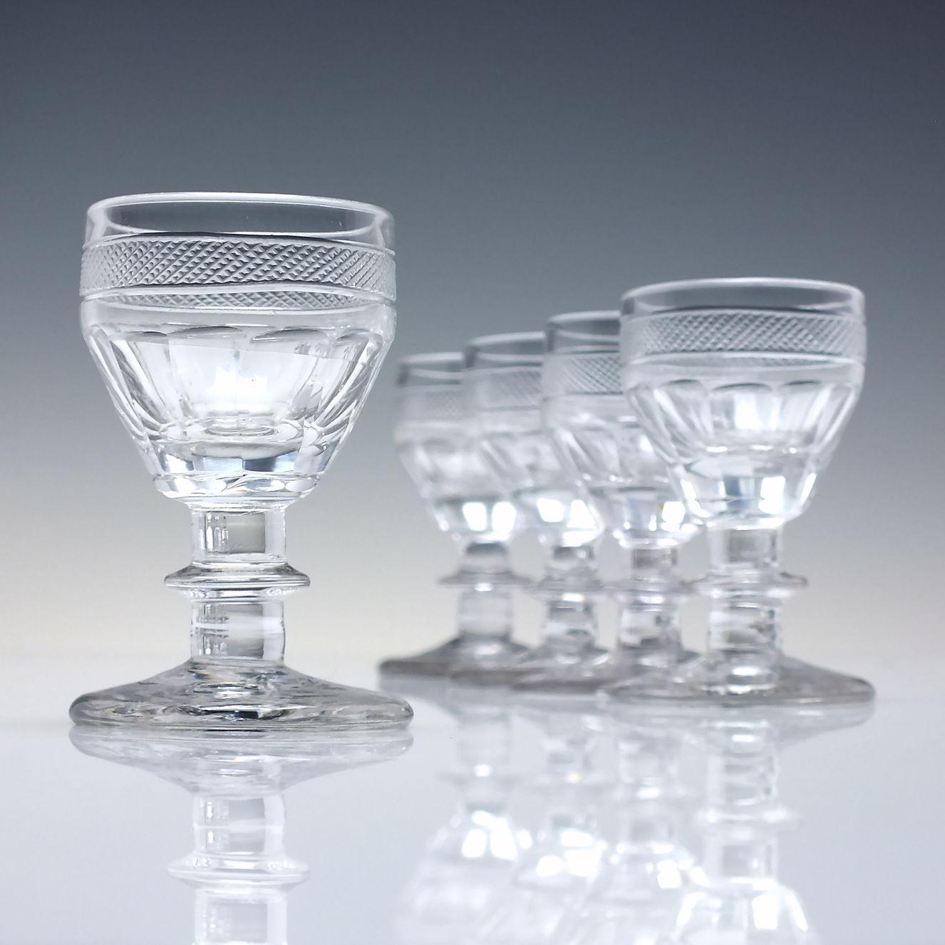 A superb set of five Georgian Anglo-Irish dram glasses dating to c1790.