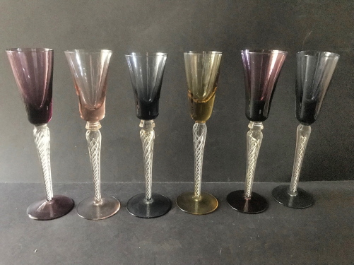 Five Harlequin Champagne Flutes