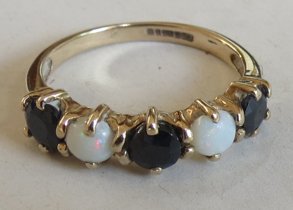 Five-Stone, Opal and Sapphire, 9ct Gold Ring (1 of 1)