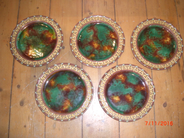 Five Wedgwood Majolica Plates Reticulated Greek Key Stanley Pattern