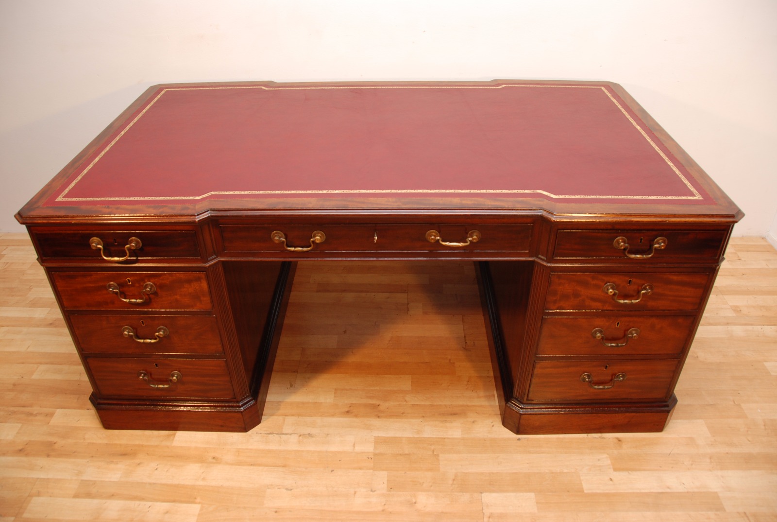 Flame Mahogany Breakfront Large Partners Writing Pedestal Desk c.1910