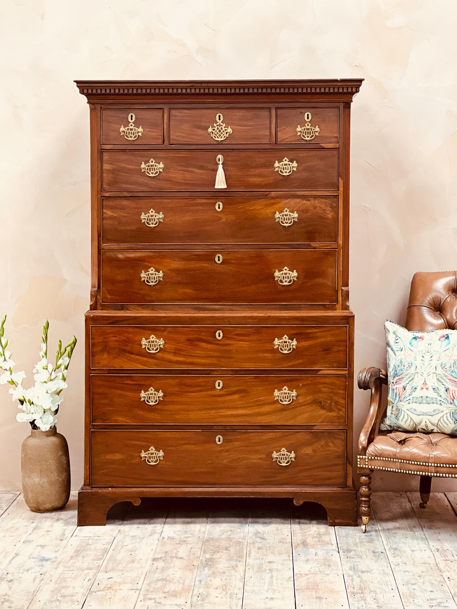 Flamed Mahogany Georgian Chest on Chest