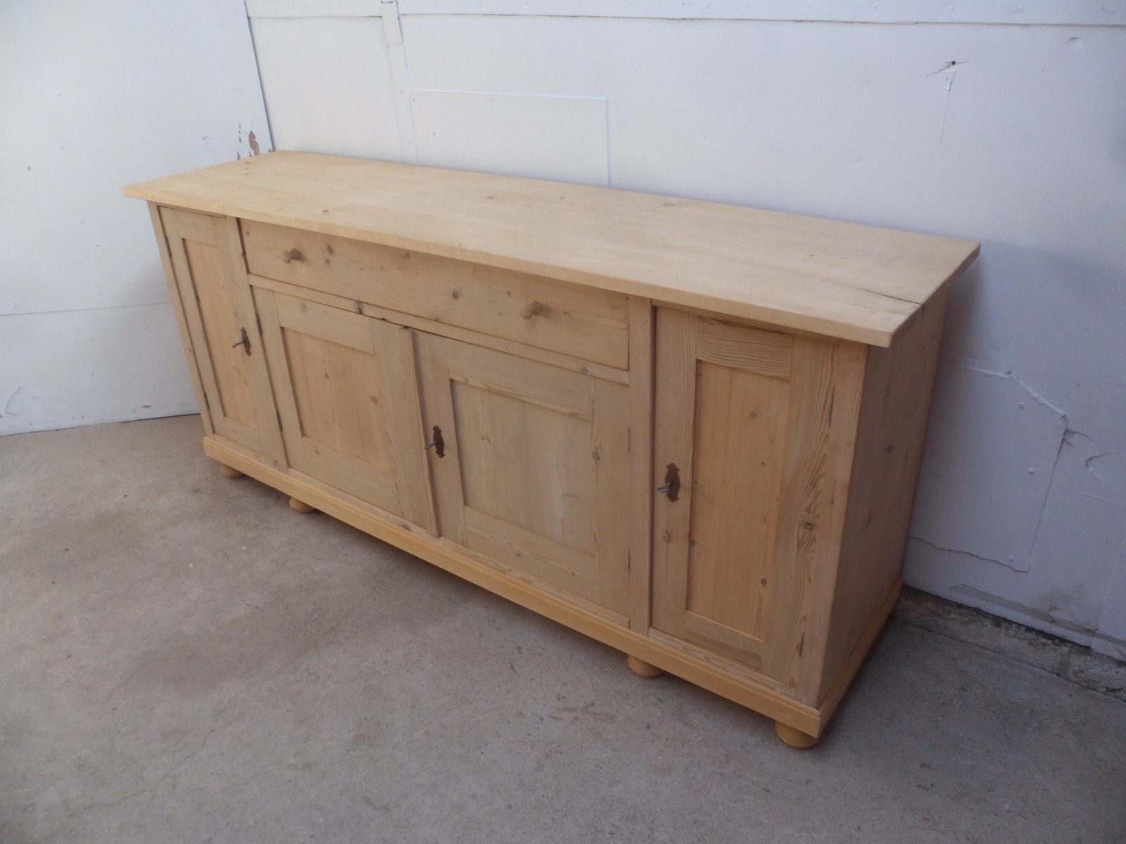 Flat 2 Metre 4 Door Old Pine Dresser Base / TV Stand to wax / paint