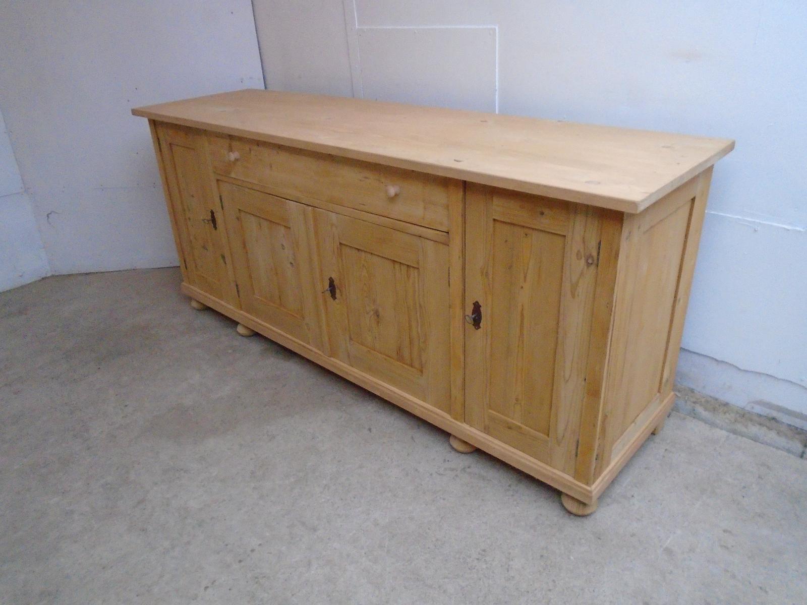 Flat 4 Door Antique Pine Dresser Base / TV Stand to wax / paint
