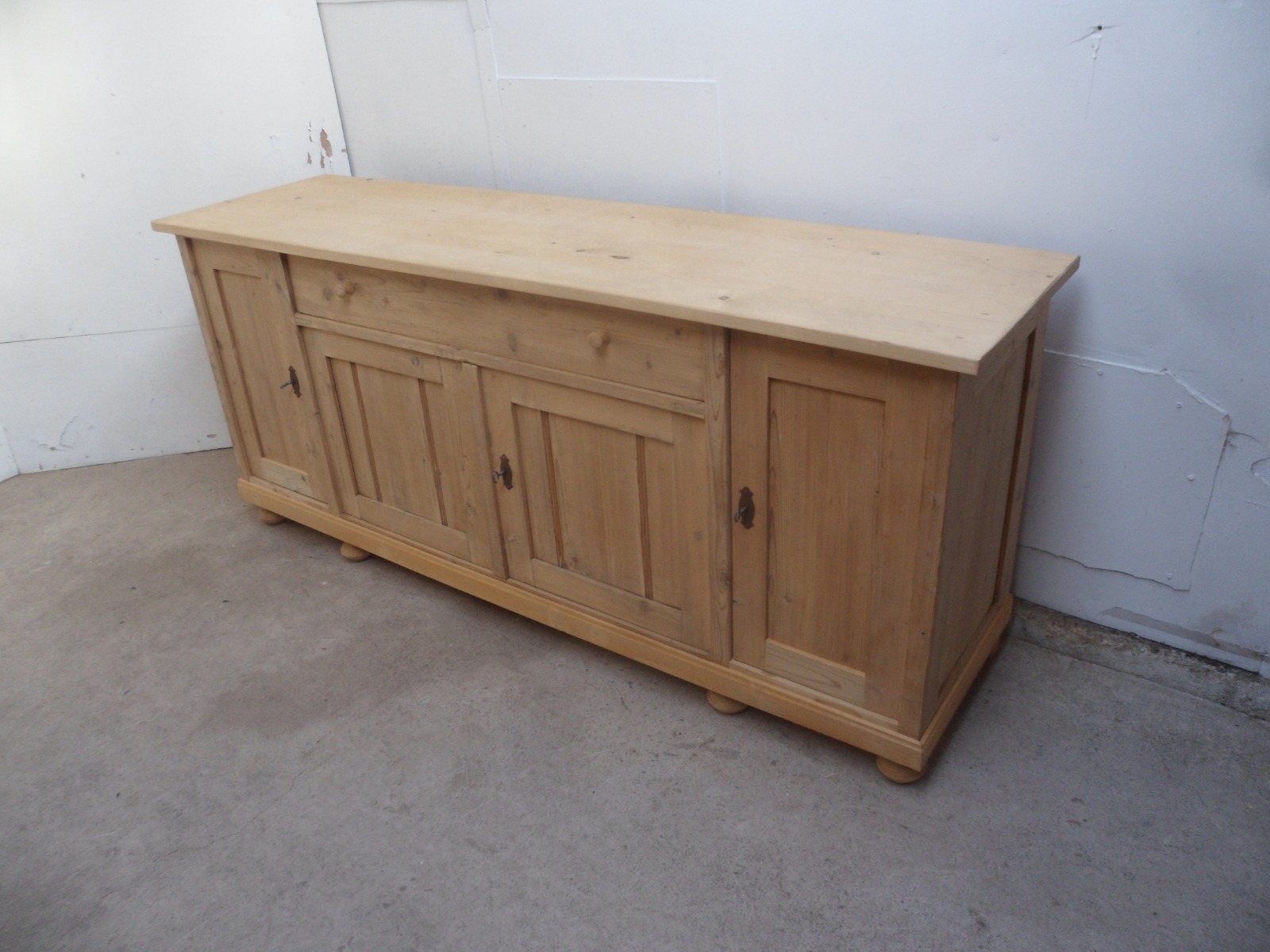 Flat Panelled 4 Door Old Pine Dresser Base / TV Stand to wax/ paint