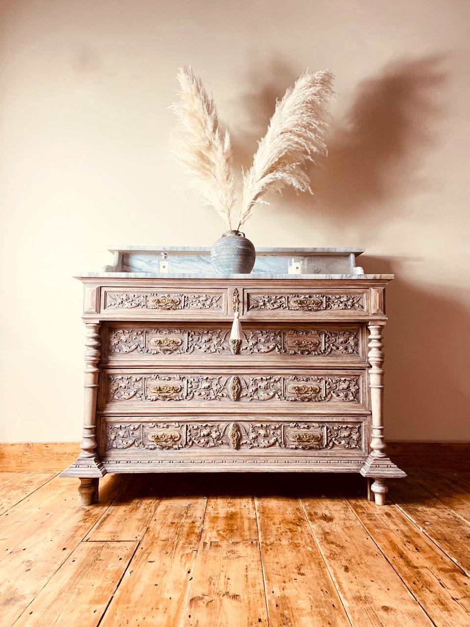 Flemish Antique Drawers / Marble Gallery Chest of Drawers
