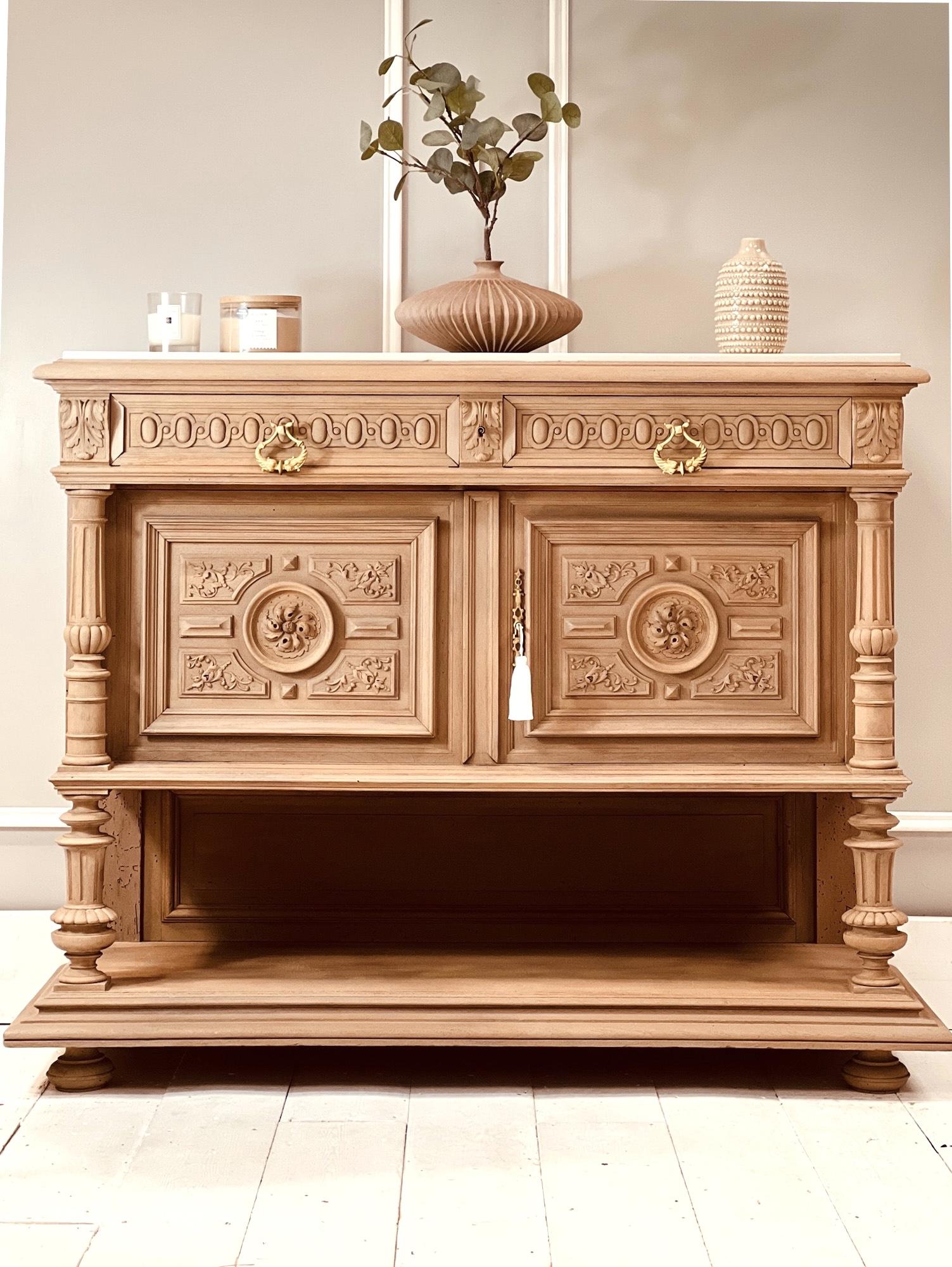 Flemish Antique Sideboard / Marble Cupboard / Carved Sideboard