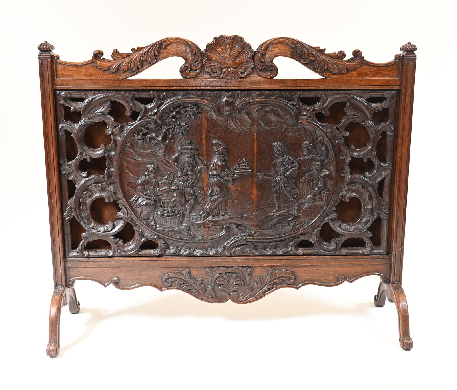 Flemish Carved Fire Screen Divider Walnut c.1880