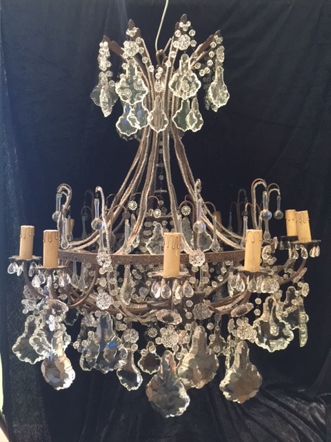 Florentine Dark Framed Large Antique Chandelier c.1900