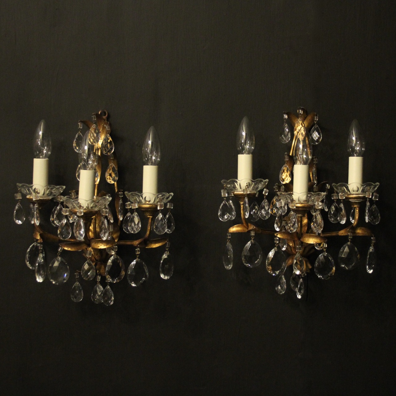 Florentine Pair of Gilded Triple Arm Wall Lights