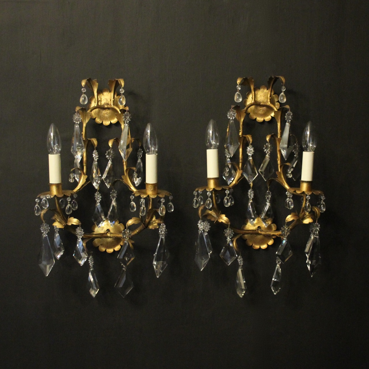 Florentine Pair of Gilded Twin Arm Wall Lights