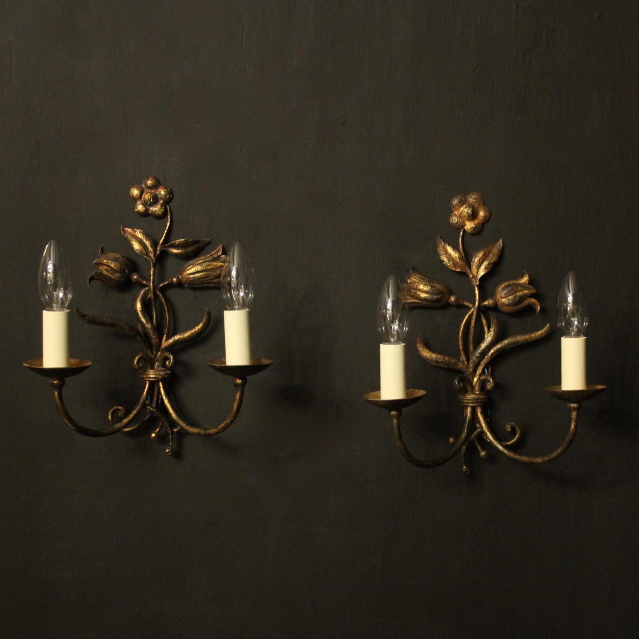 Florentine Pair of Toleware Twin Arm Wall Lights