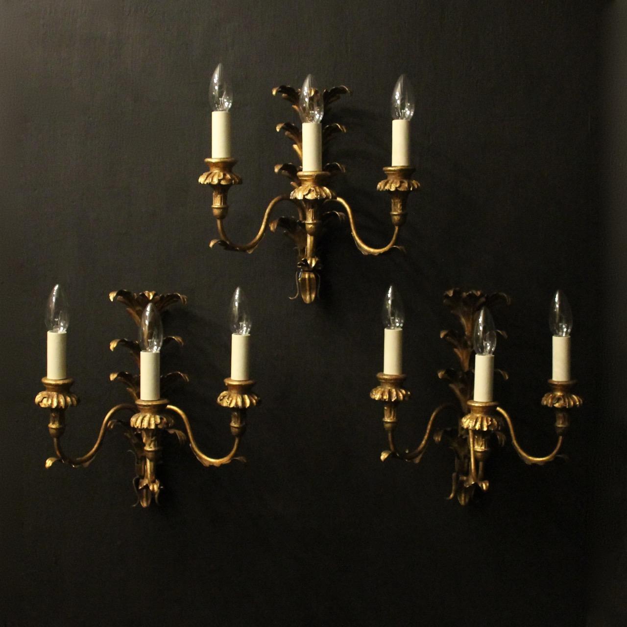 Florentine Set of 3 Gilded Triple Arm Wall Lights