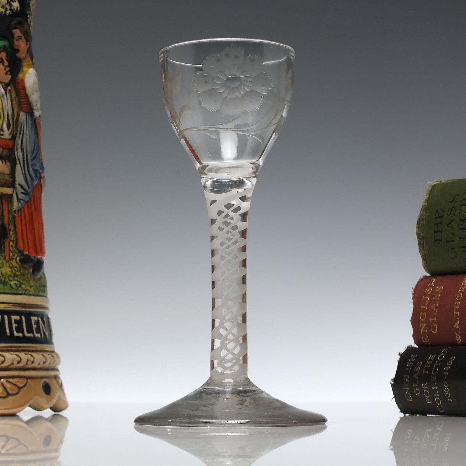 Flower Engraved Opaque Twist Wine Glass c.1760