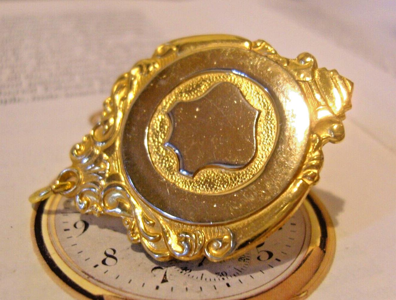 Fob 12ct Gold/p Pocket Watch Chain Vintage Shield Fob Victorian Style 1950s Nos