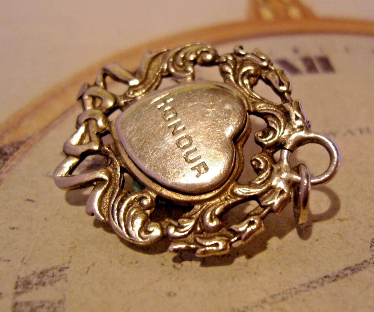 Fob 1890s Victorian Pocket Watch Chain Antique Silver Nickel Shield 'Honour' Fob