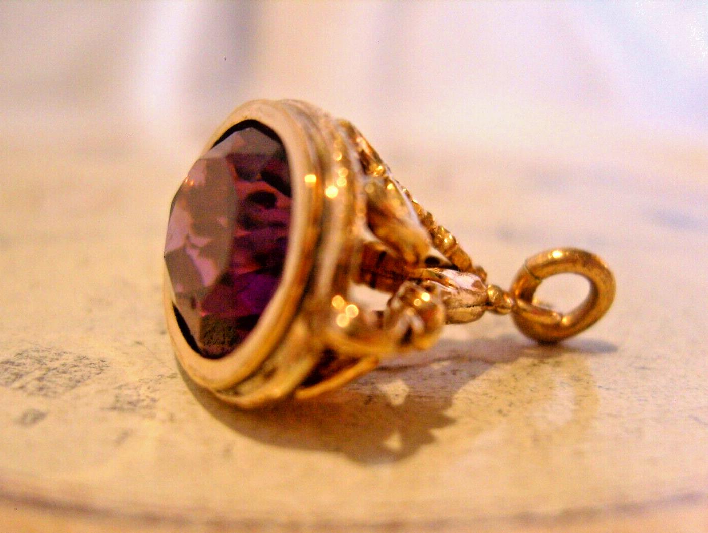 Fob 1910 Art Nouveau 12ct Rose Gold Filled & Amethyst Pocket Watch Chain Fob