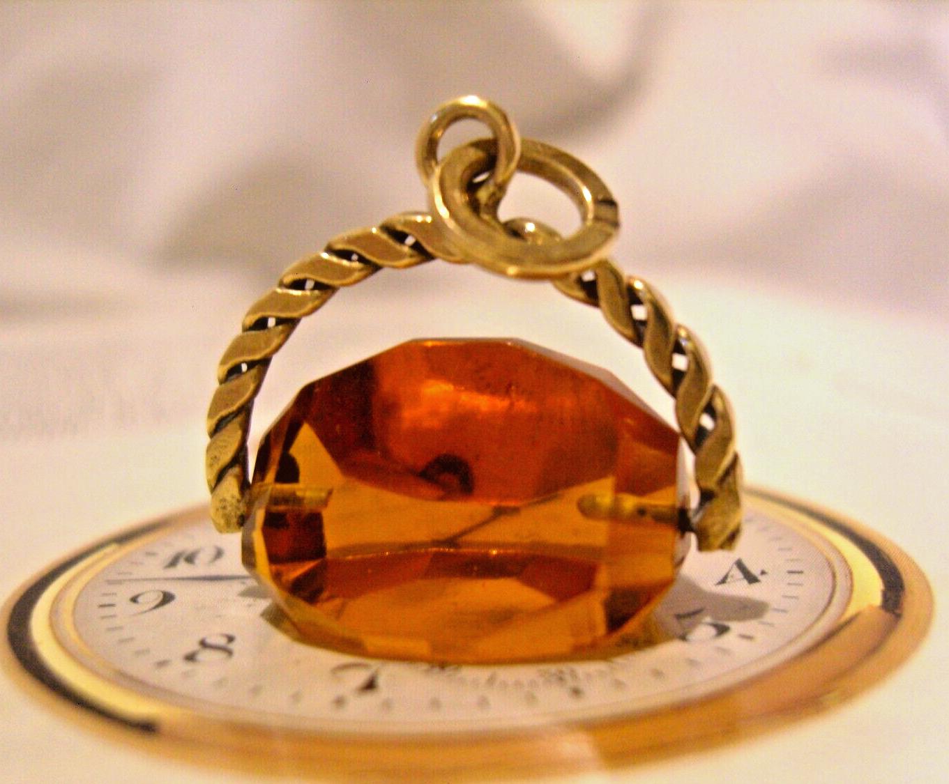 Fob 1920s Pocket Watch Chain Antique Brass & Vivid Ctrine Spinner Fob