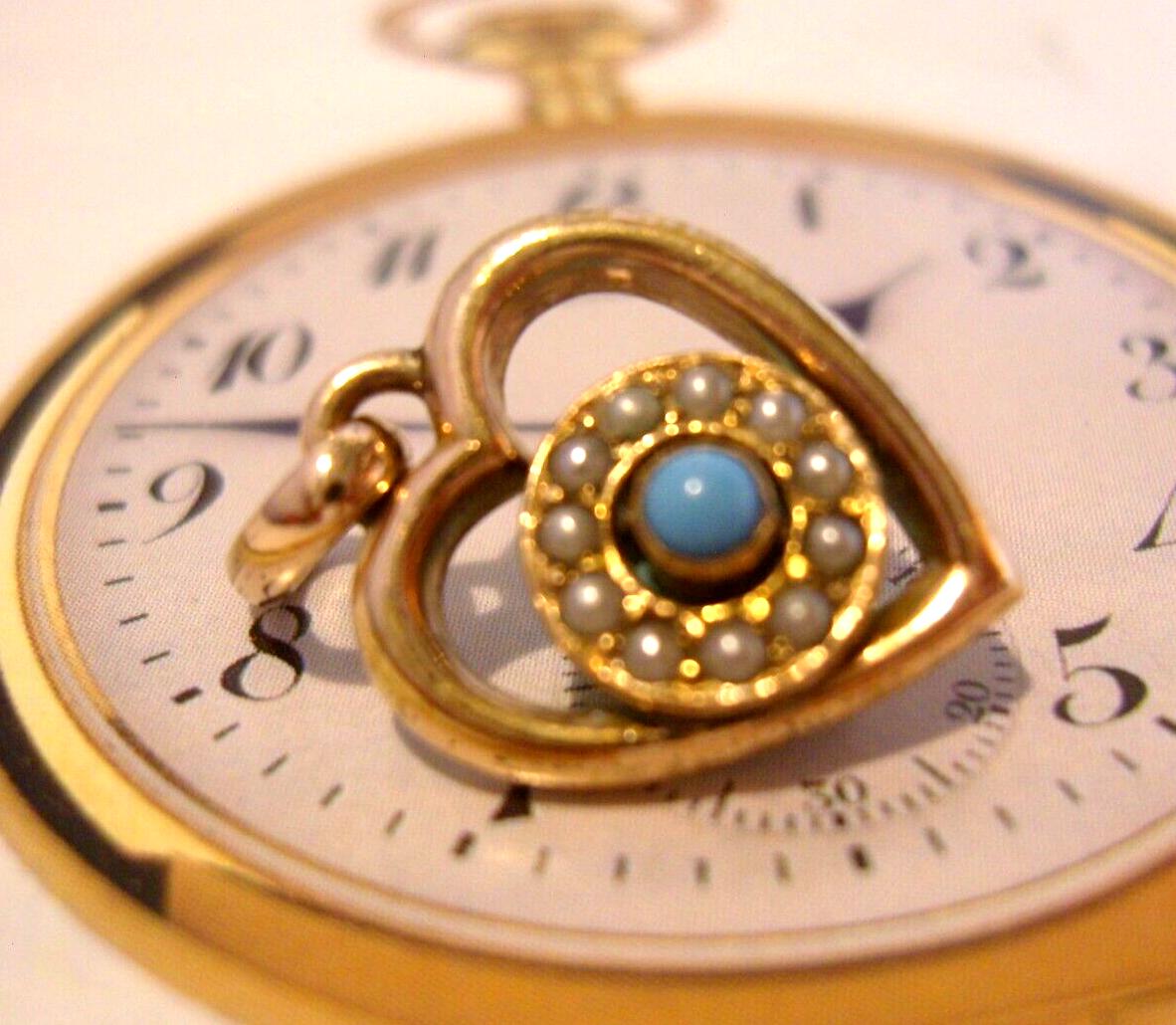 Fob Victorian 1890s Pocket Watch Chain Ornate 10ct Rose Rolled Gold Puffy Heart Fob