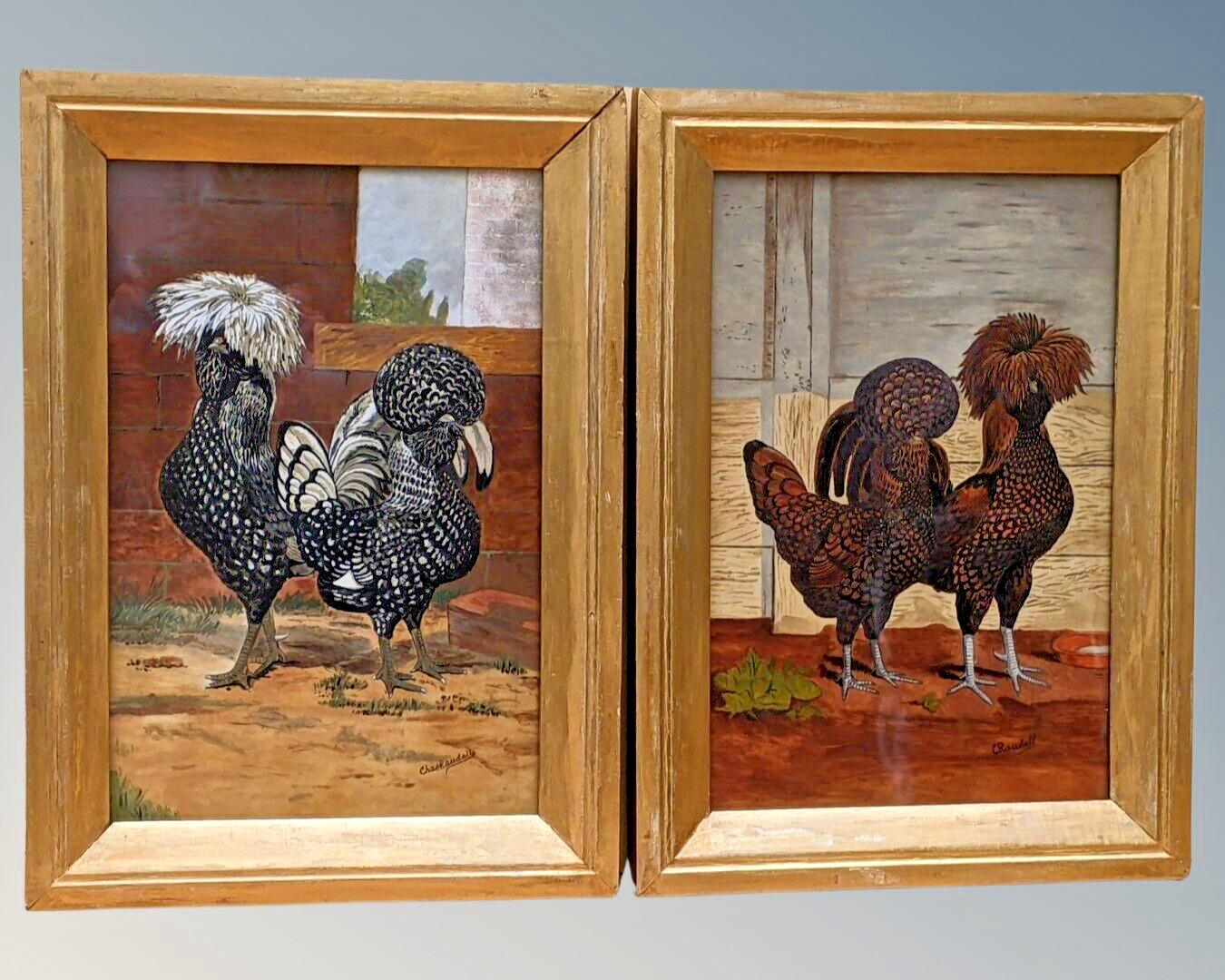 Folk Art Oil Paintings Chickens Charles Randell 19th Century (1 of 9)