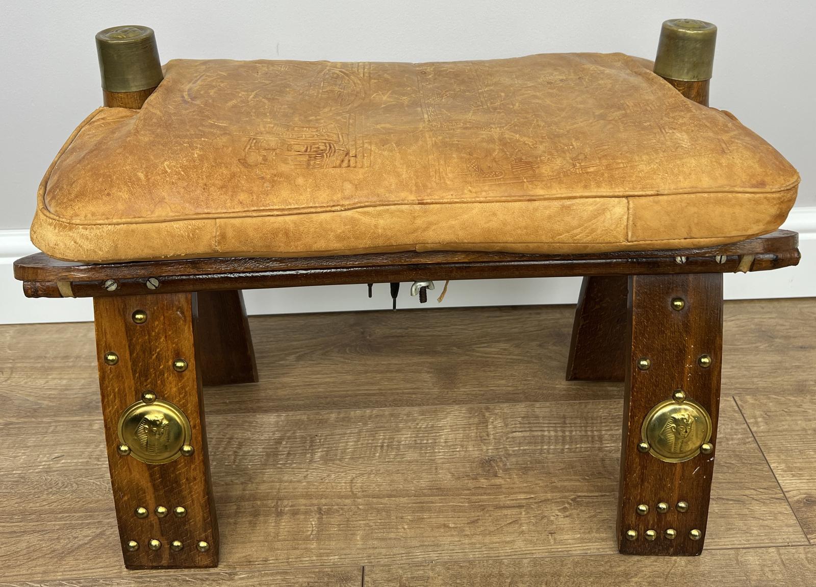 Footstool Vintage Style Oak Stool Brass Upholstered Leather Seat