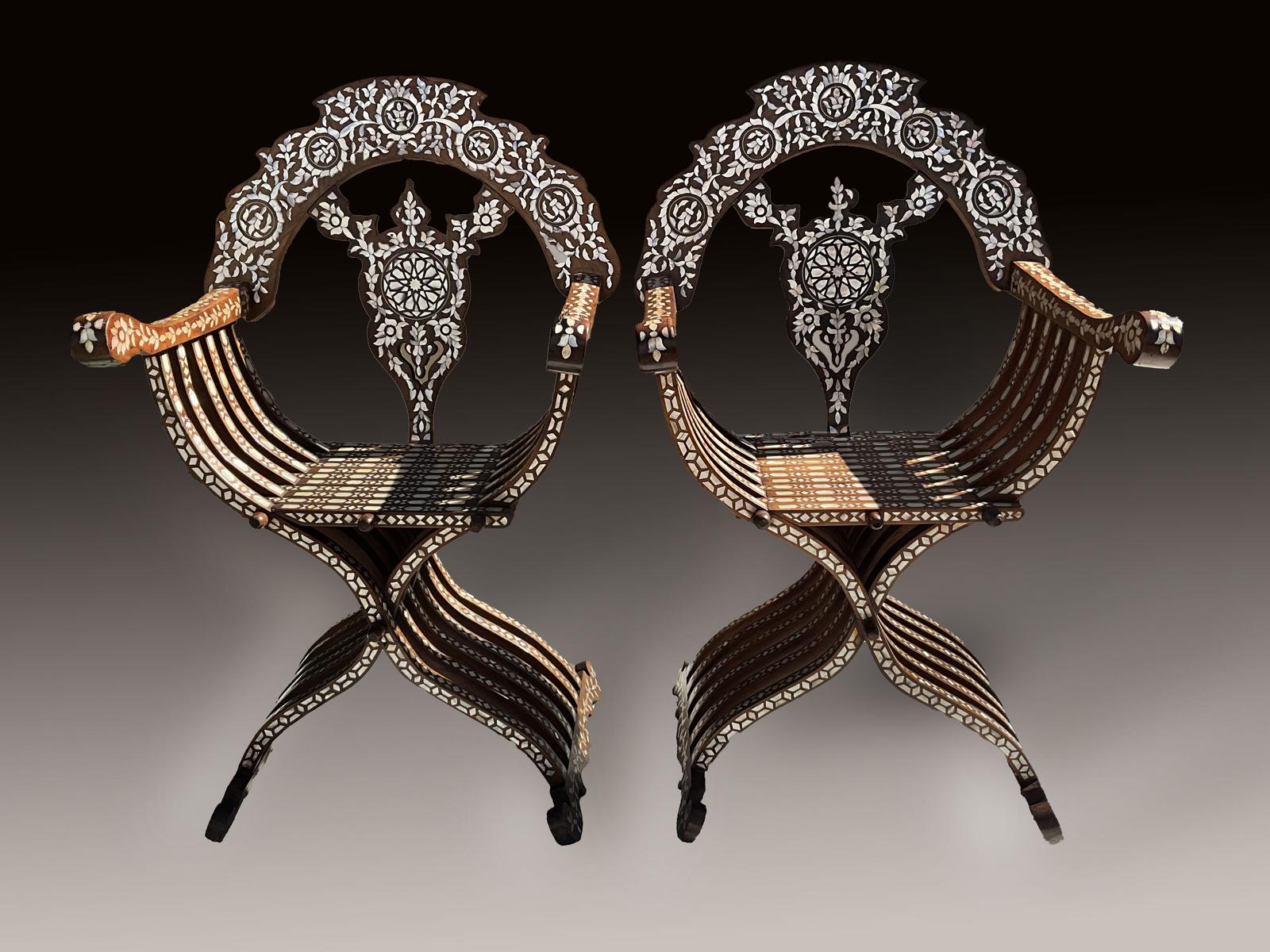 For Sale is This Magnificent Pair of 19th Century Moorish Savonarola Chairs