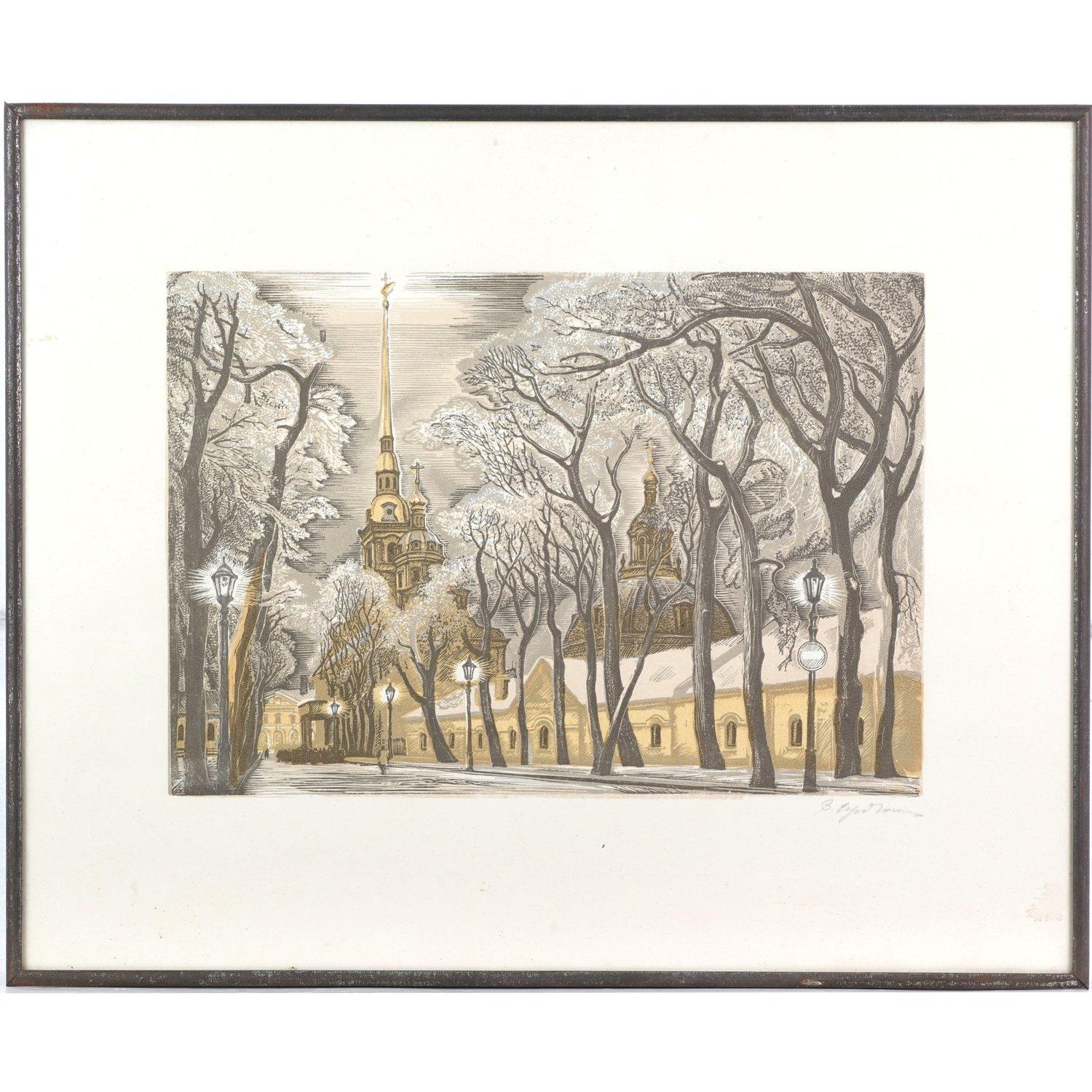 Fortress of Peter and Paul, Leningrad, Woodcut by VI Serdyukov