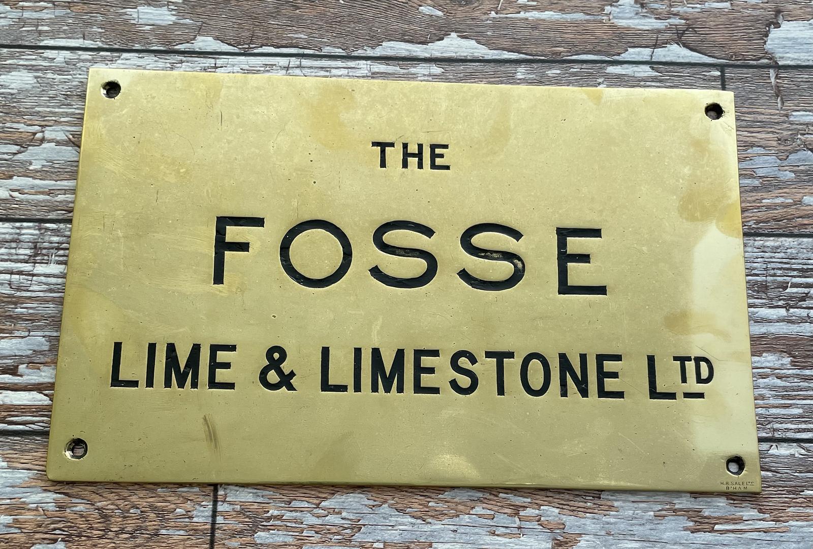 Offered for sale is this brass sign for Fosse Lime and Limestone Ltd.