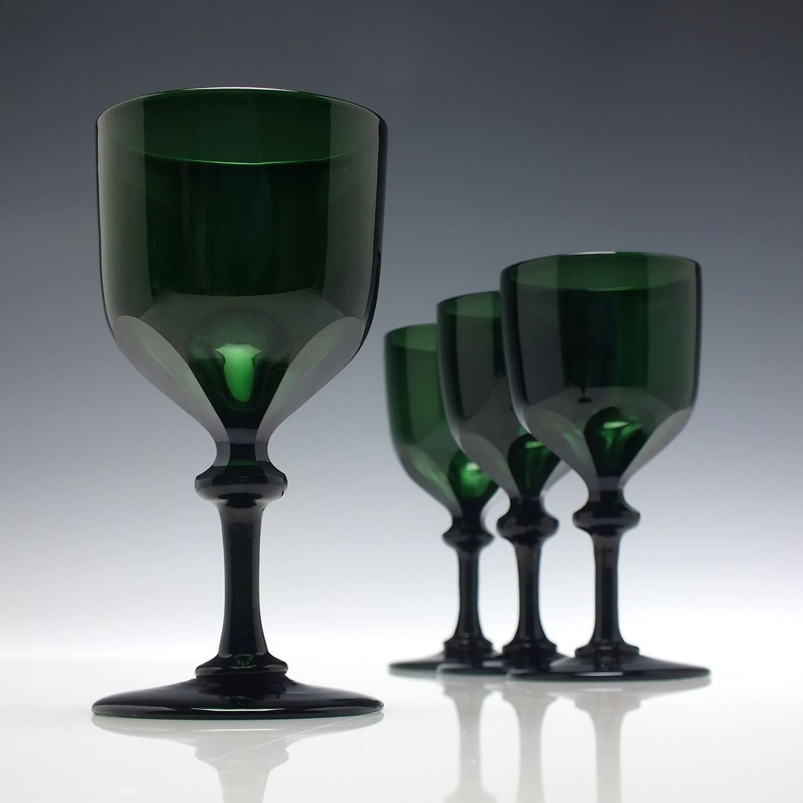 Four 19th Century Dark Green Wine Glasses c.1820