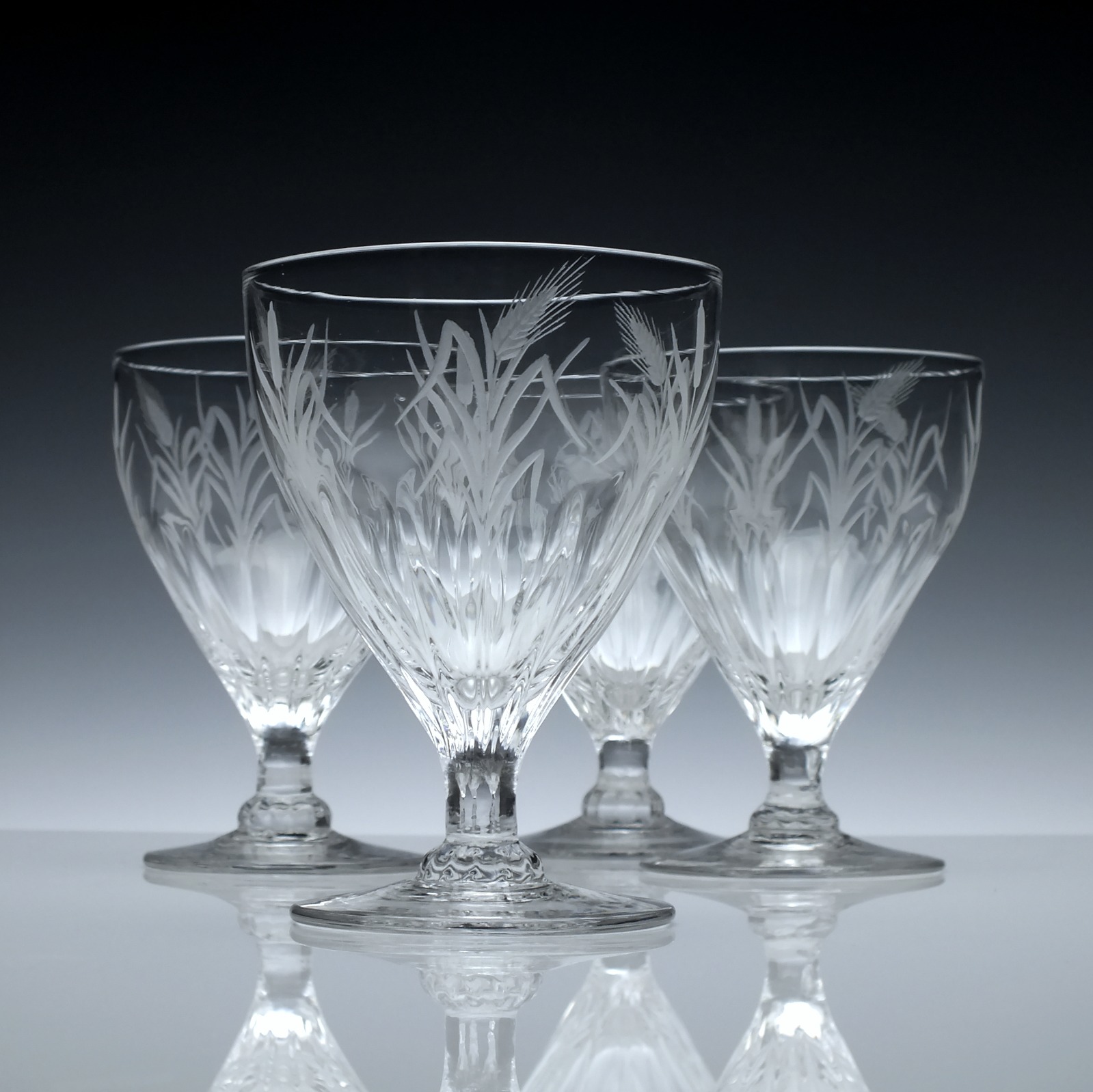 Four Antique Drinking Glasses 19th Century Engraved Glass Rummers c.1830