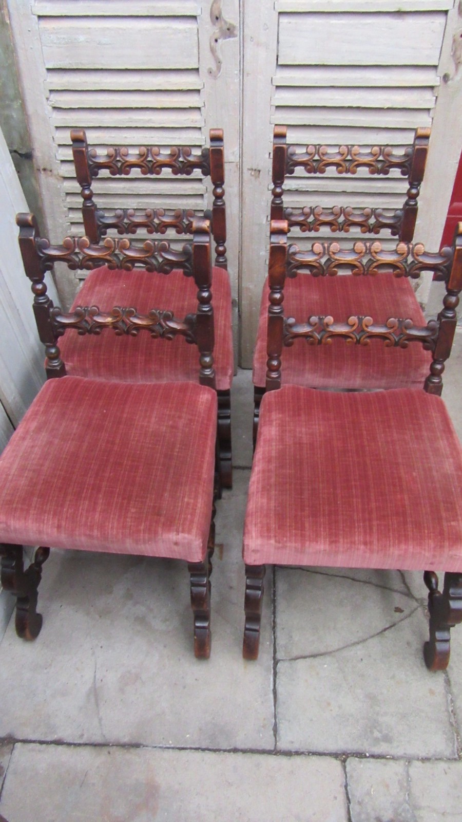 Four Antique Gothic Style Oak Dining Chairs C.1900