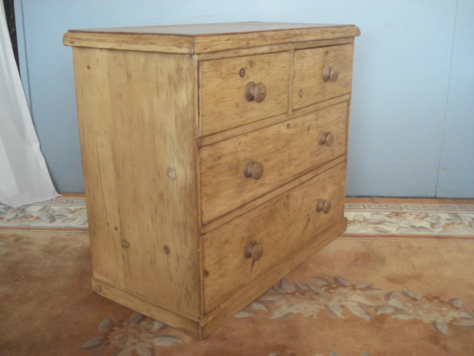Four Drawer Victorian Pine Chest with Its Original Turned Knobs