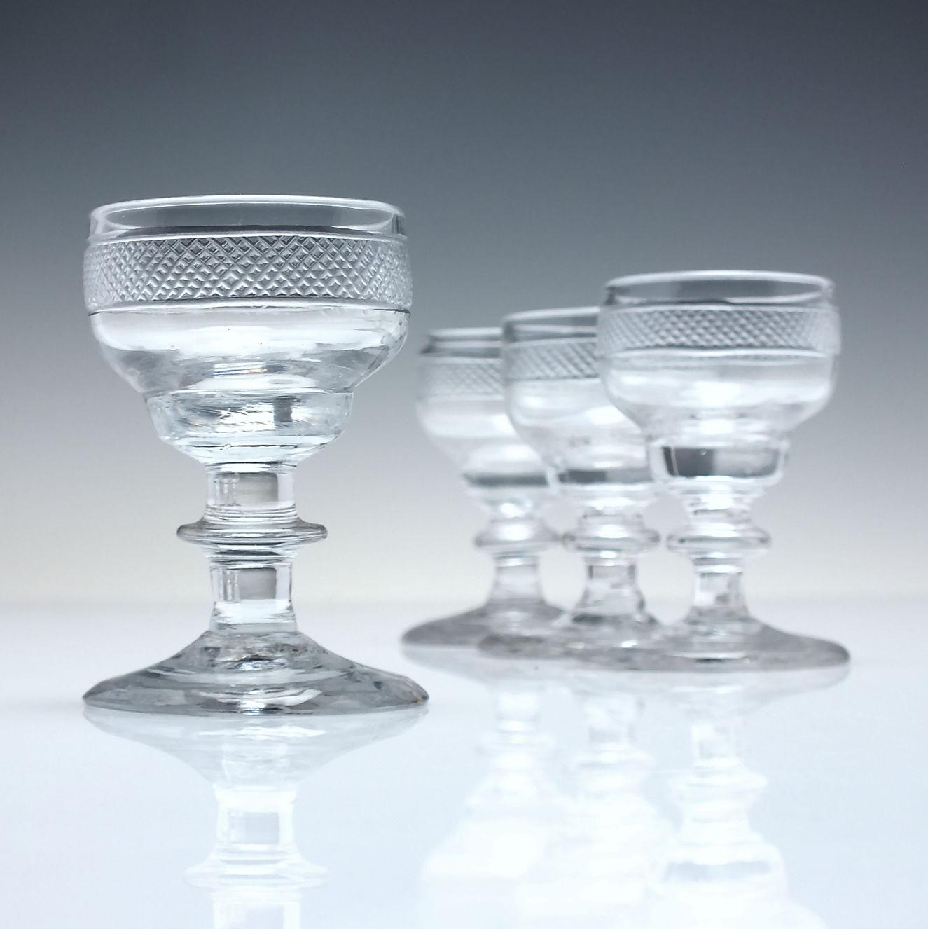 A superb set of four Georgian Anglo Irish dram glasses dating to c1790.