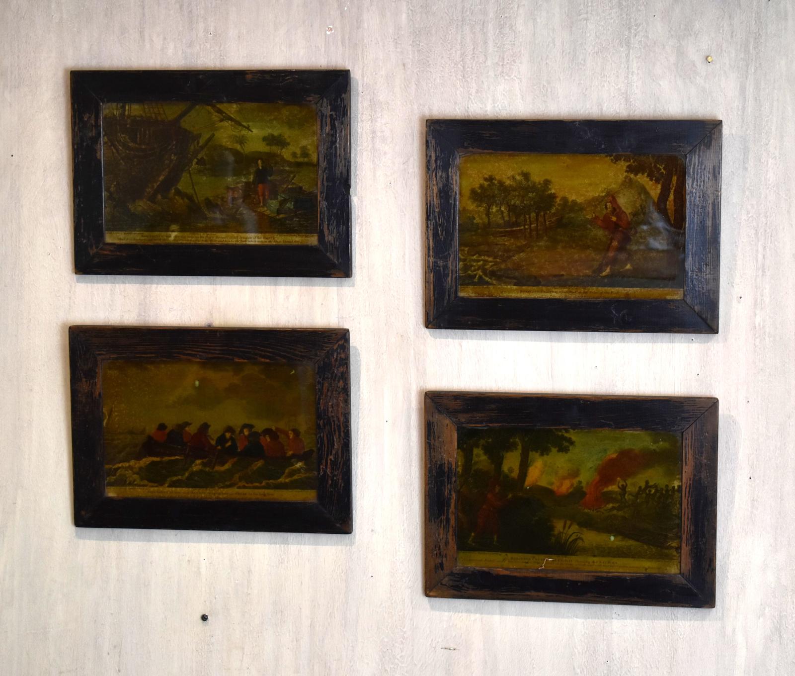 Four Georgian Reverse Painted Prints on Glass (1 of 6)