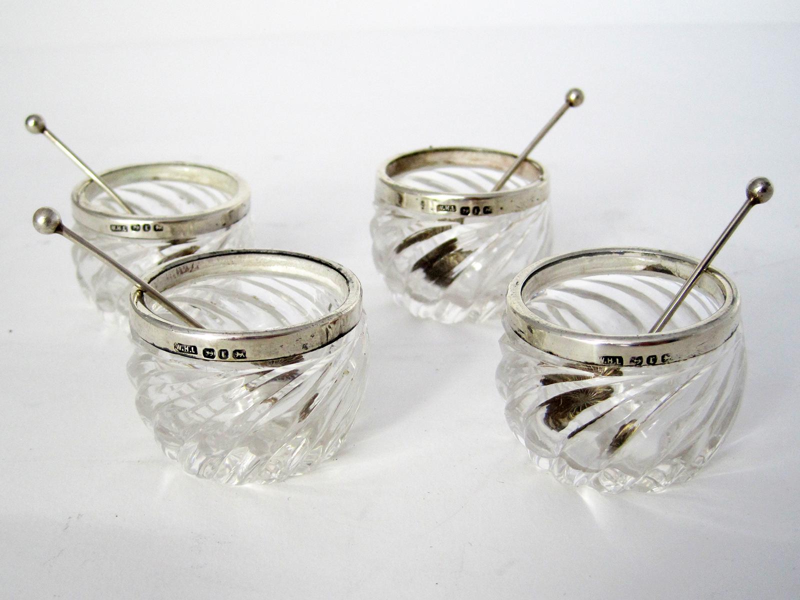 Four Late Victorian Silver & Glass Salts with Matching Spoons (1 of 5)