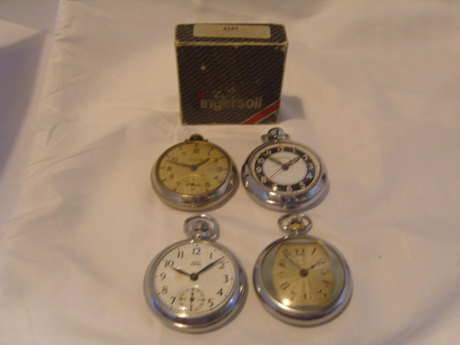 Four Pocket Watches All Running Smiths Ingersoll with Box Bentima & Kelton