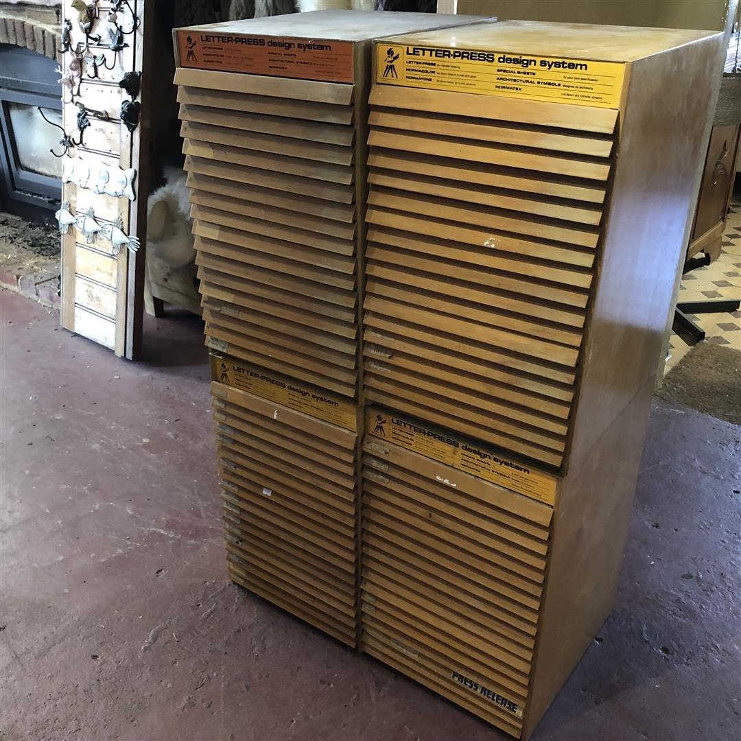 Four Vintage Graphic Design Architect's Letter Press Small Chest of Drawers Office Filing Shop Display 1970's