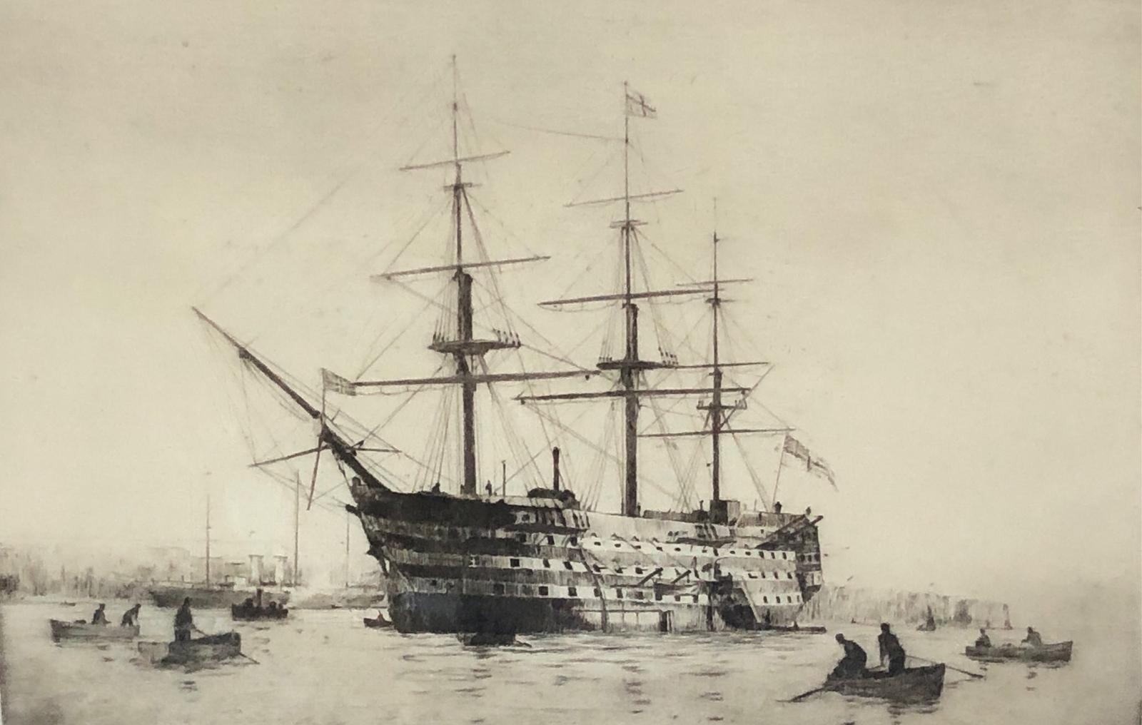 Frame Etching' HMS Victory in Portsmouth Harbour' by Rowland Langmaid Angmaid