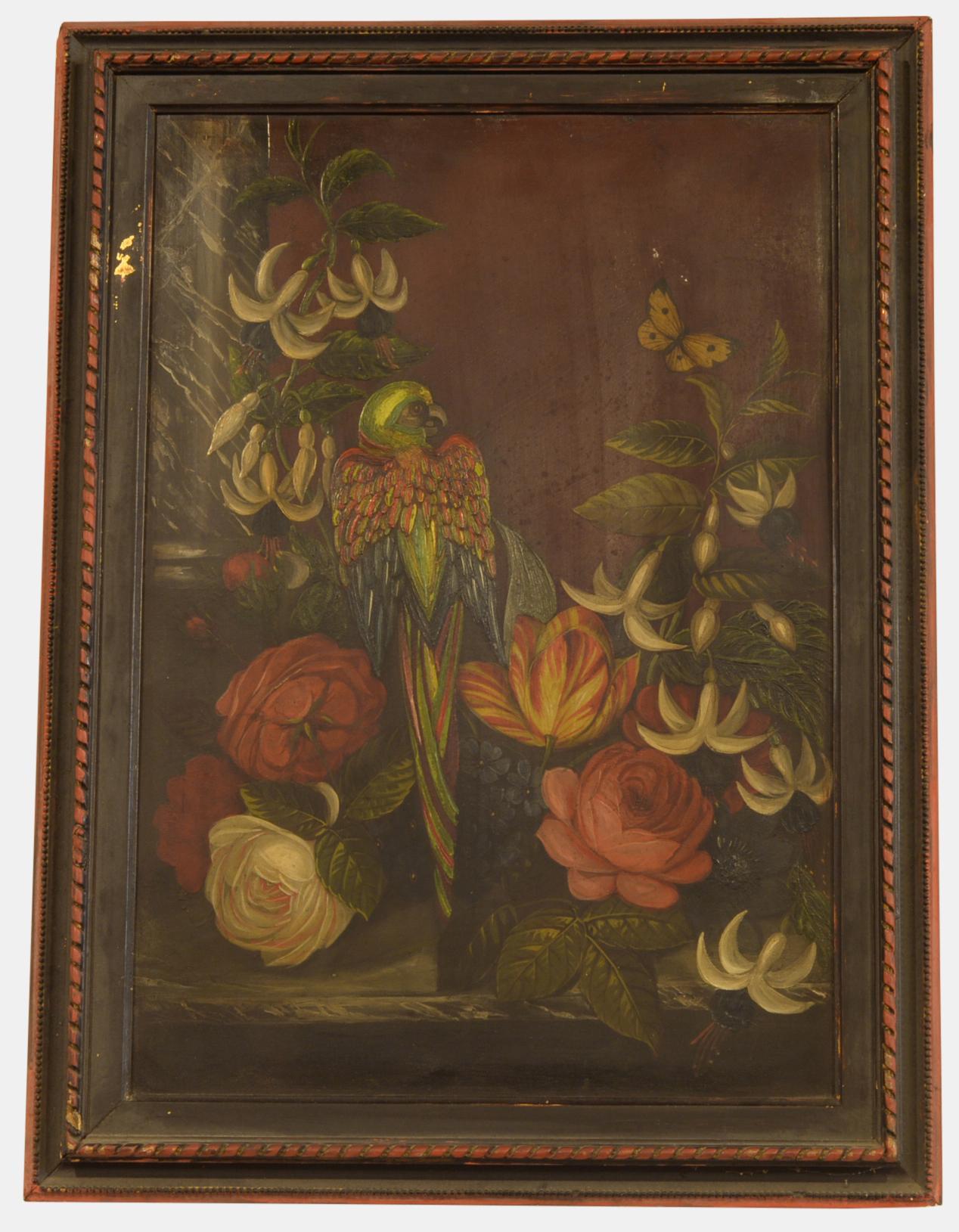 Framed 19th Century Oil on Tin of Parrot (1 of 3)