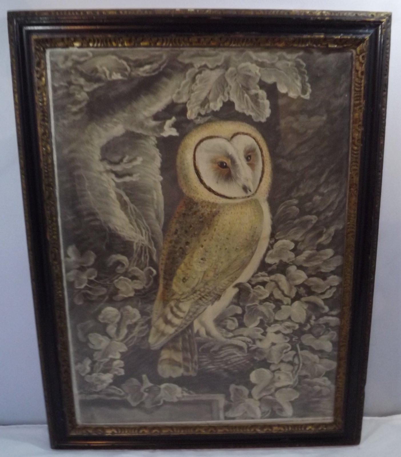 Framed Georgian Hand-Coloured Engraving of an Owl