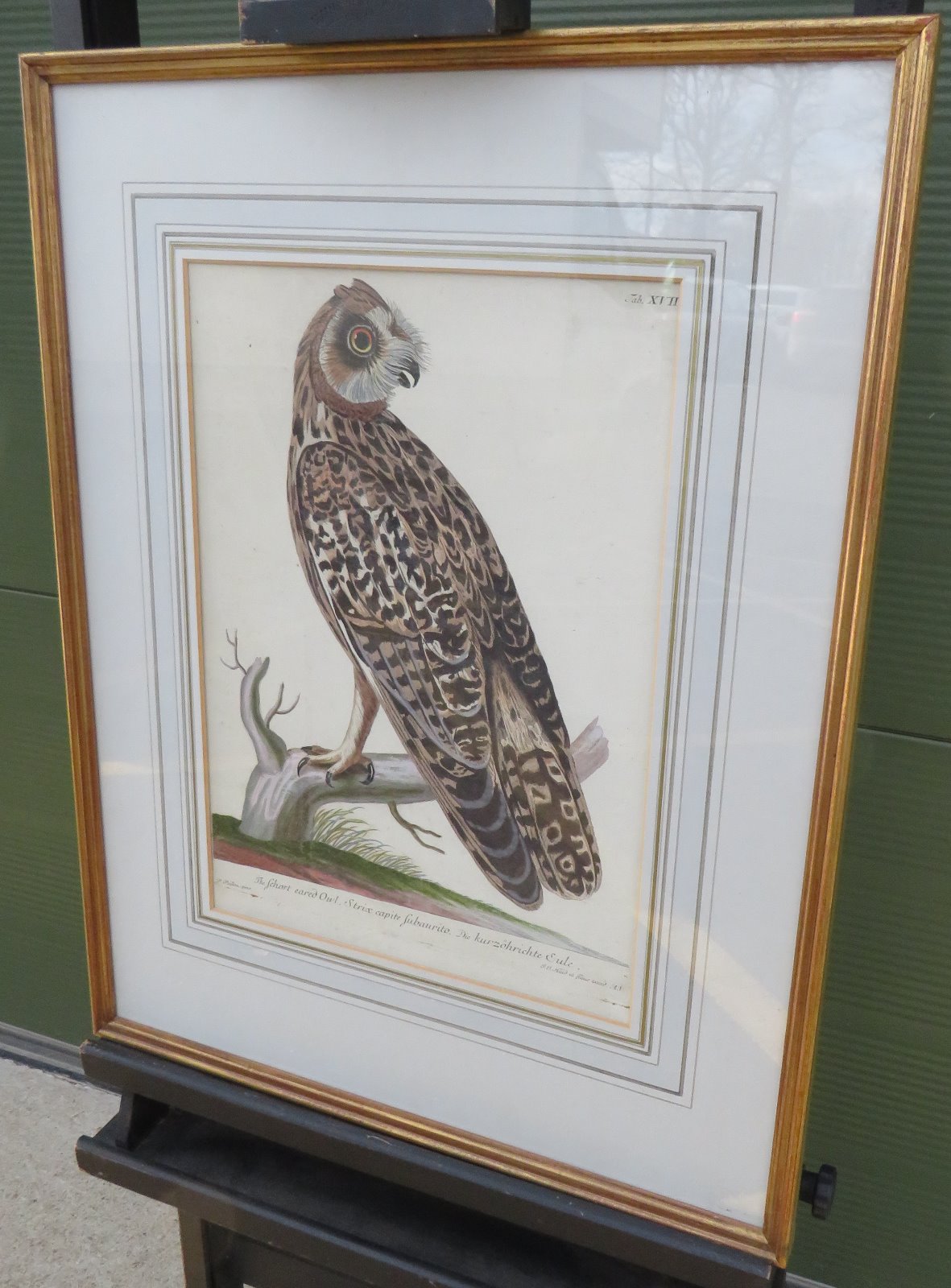 Framed Hand-Coloured Engraving of a Owl