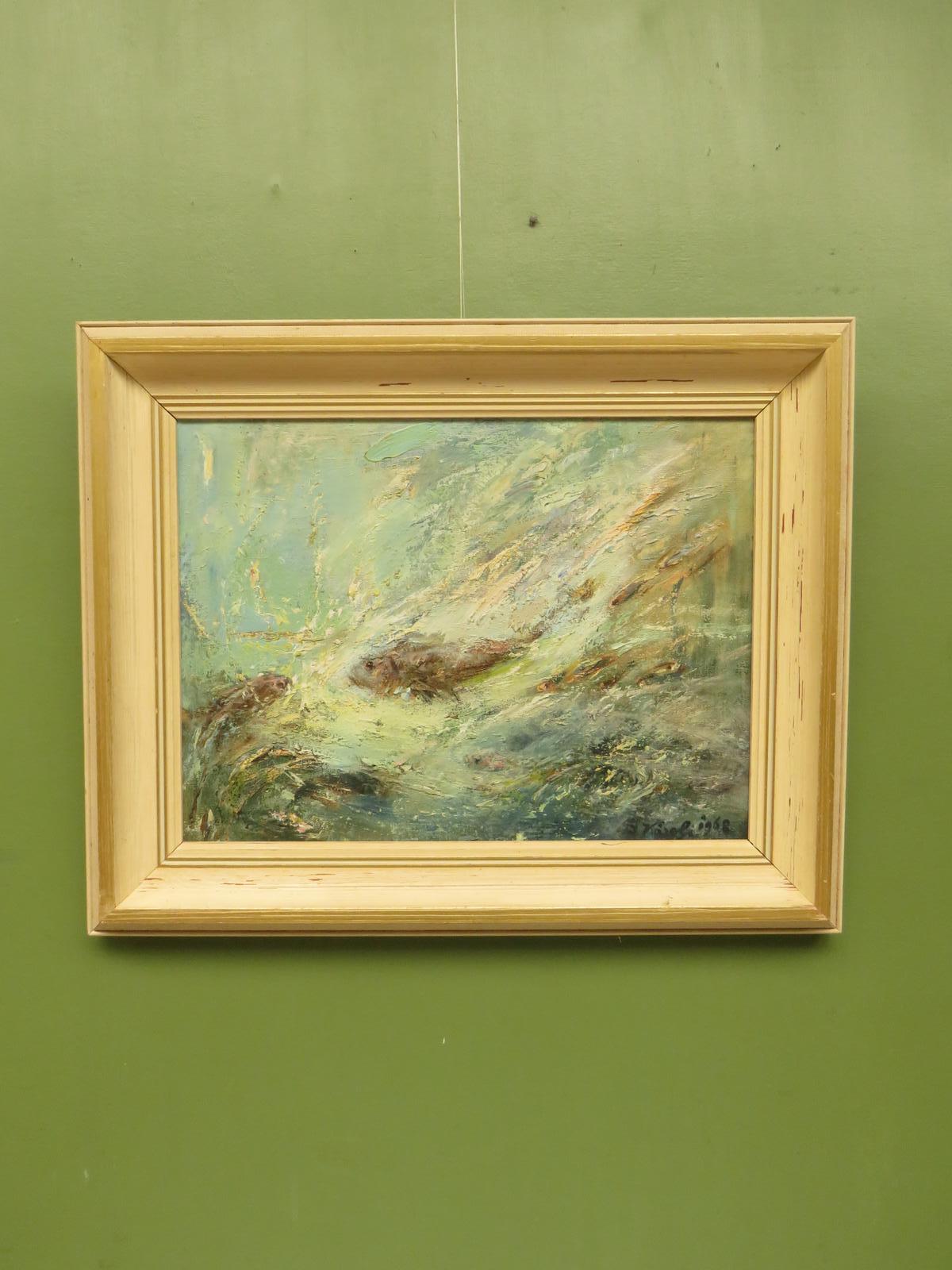 Framed Oil on Board 'Fish' by Karolyi - Signed & Dated 1968