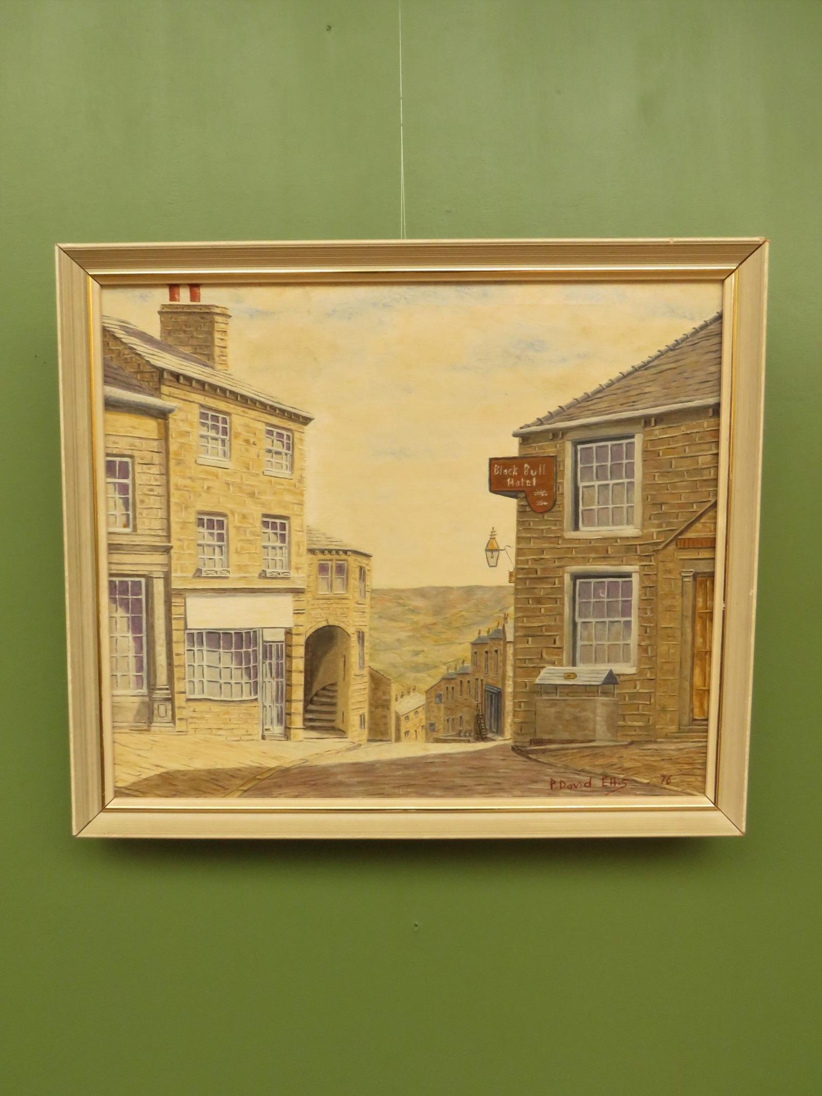 Framed Oil Painting of The Black Bull Hotel in Haworth by David Ellis, 1976