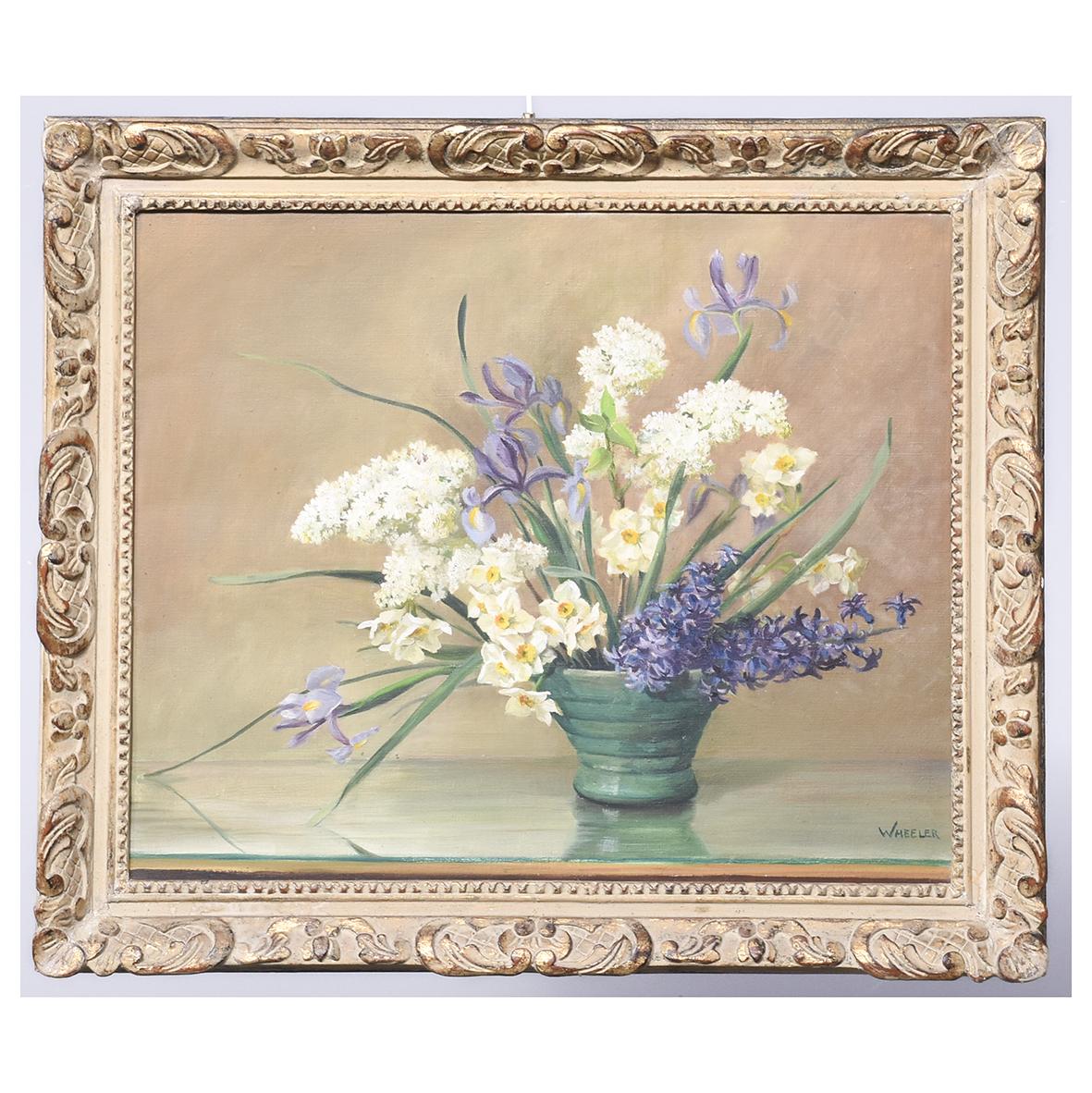 Framed Still Life Oil Painting Of Bowl Of Flowers By TS Wheeler (1 of 7)